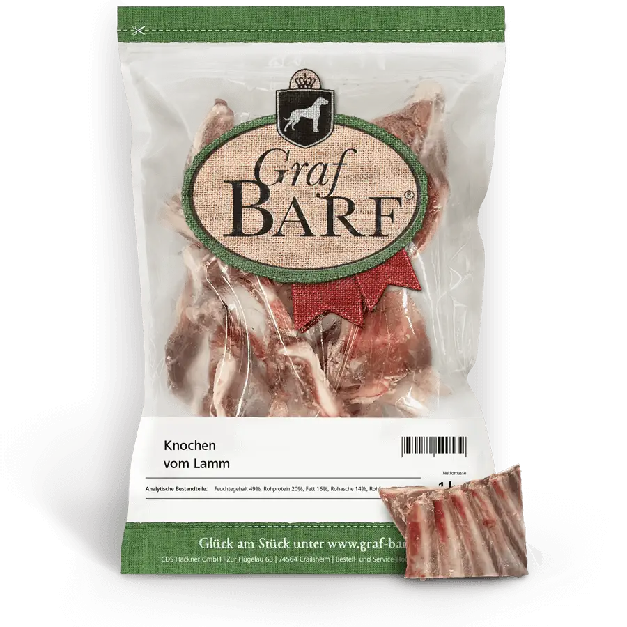 Lammknochen wirken wie eine natürliche Zahnbürste. Das Nagen stärkt das Hundegebiss. Neben dem Kauspaß erhält der Hund eine Zahnreinigung und nimmt natürlich Calcium zu sich. Bitte beachten Sie, dass die großen und kleinen Lammknochen aufgrund ihrer naturgegebenen Form deutlich von der typischen Graf Barf Würfelform abweichen.